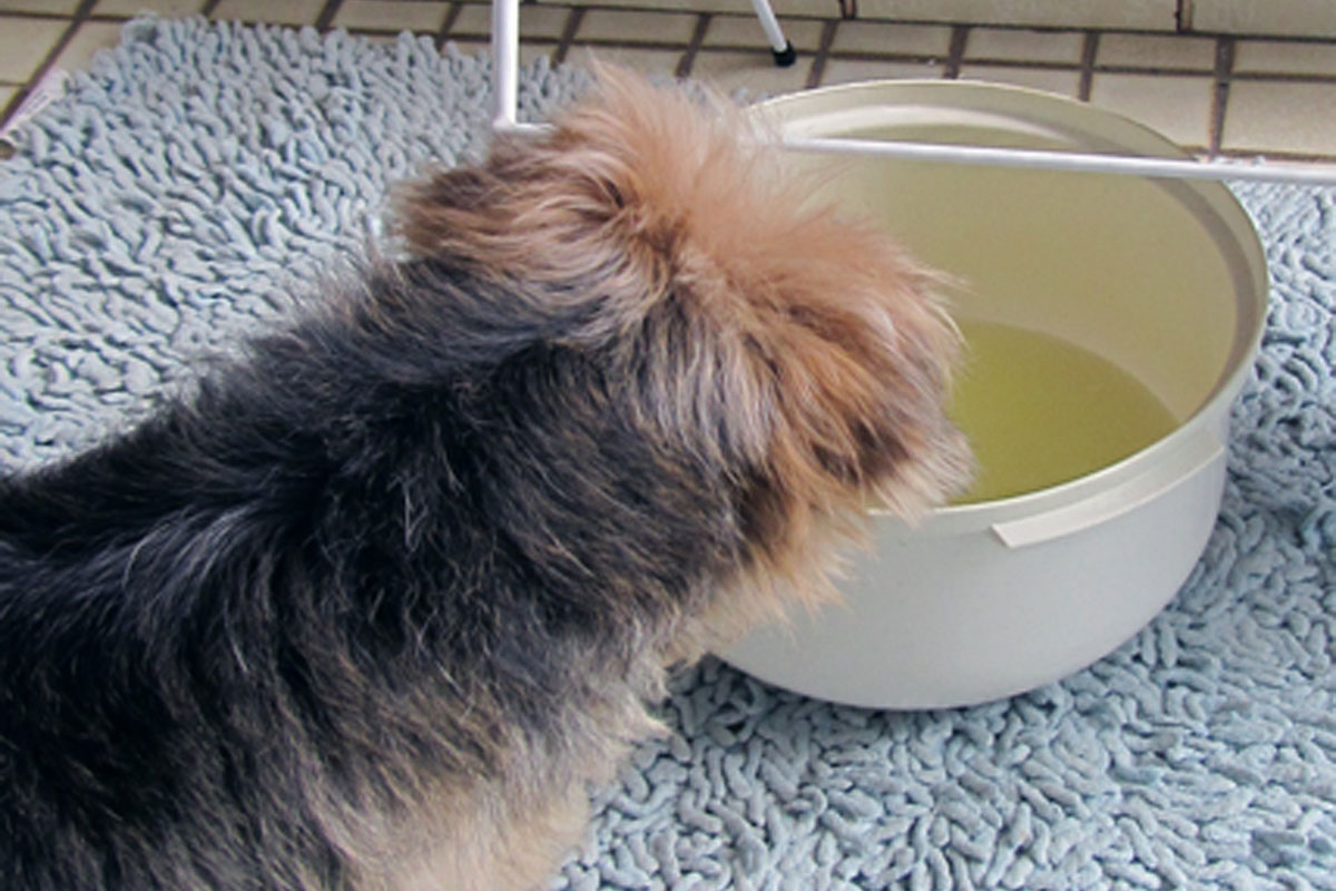 The tiny Silky Yorkie who loves, loves his kefir whey.