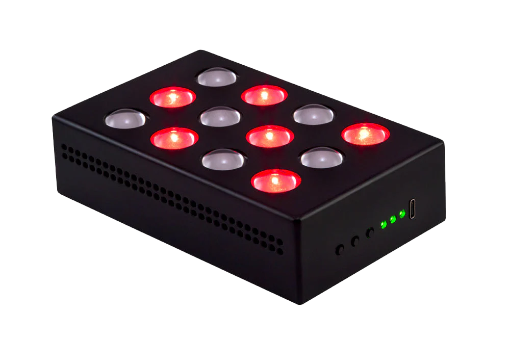 The Mini Red Light Device delivers >100 mw/cm2 of high-powered irradiance and emits 660nm red light and 850nm near-infrared light for an optimised session.