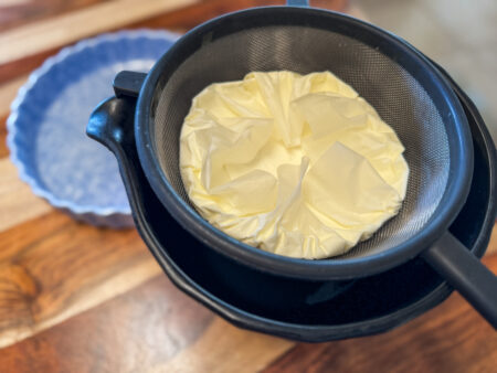 - If using the Kefirko Yogurt and Cheese Strainer, place the yogurt in the cheese strainer. Cover with the lid and let it strain for four to six hours.
